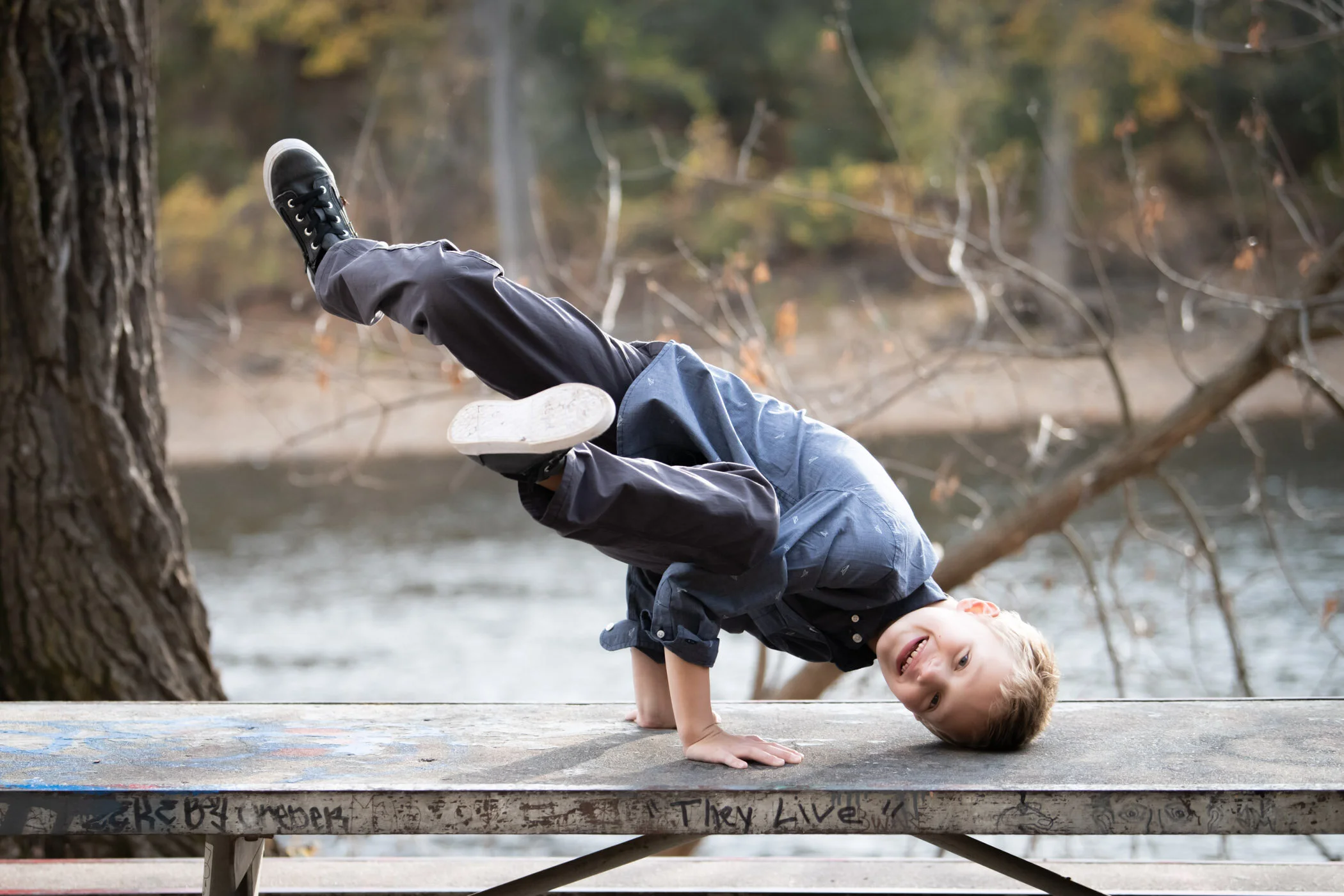 Meeting friends/clients down by the river to take fall photos on a glorious evening is so much fun. But it gets even better when the kids start showing off their gymnastic and breakdancing skills! I was so happy to capture these photos. I hope they make it into the wedding slideshow someday!
